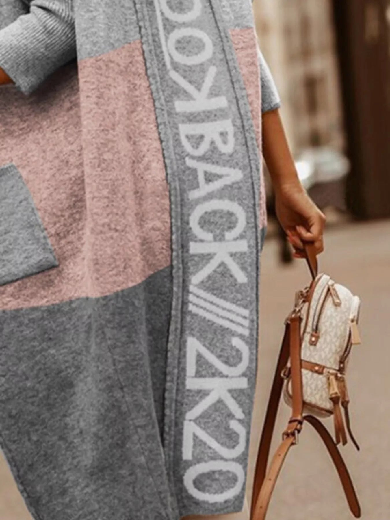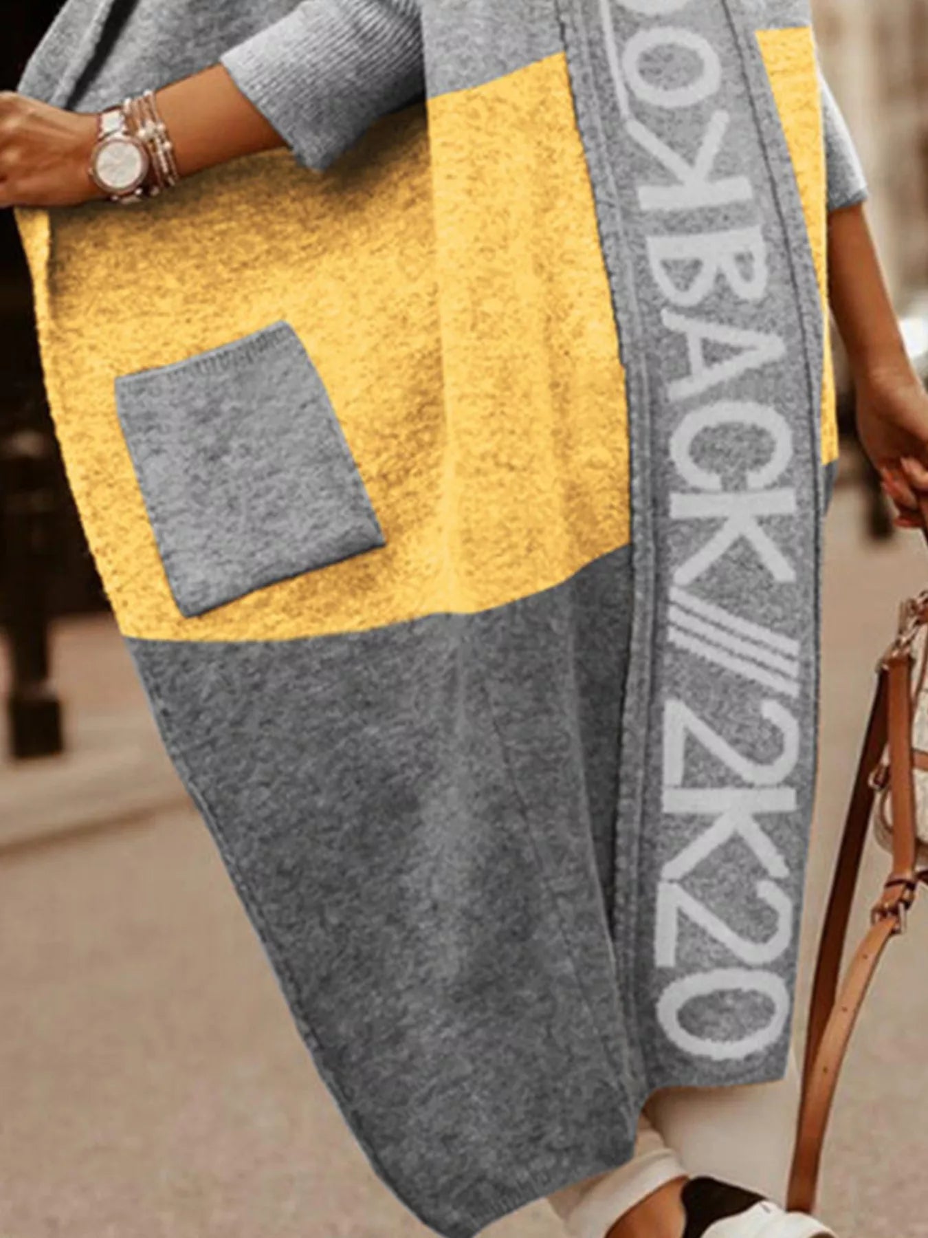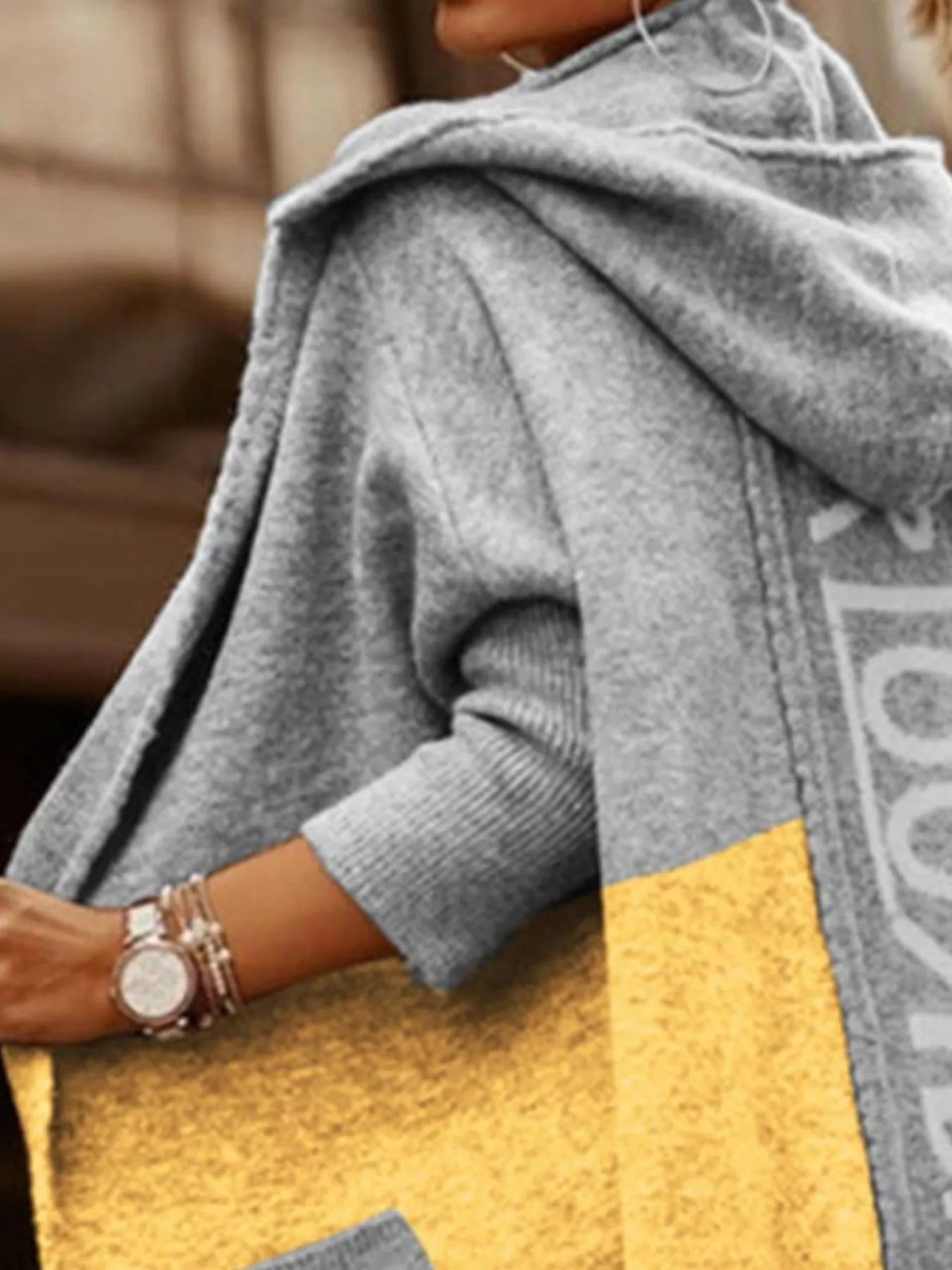 Full Size Hooded Color Block Open Front Cardigan Plus Size